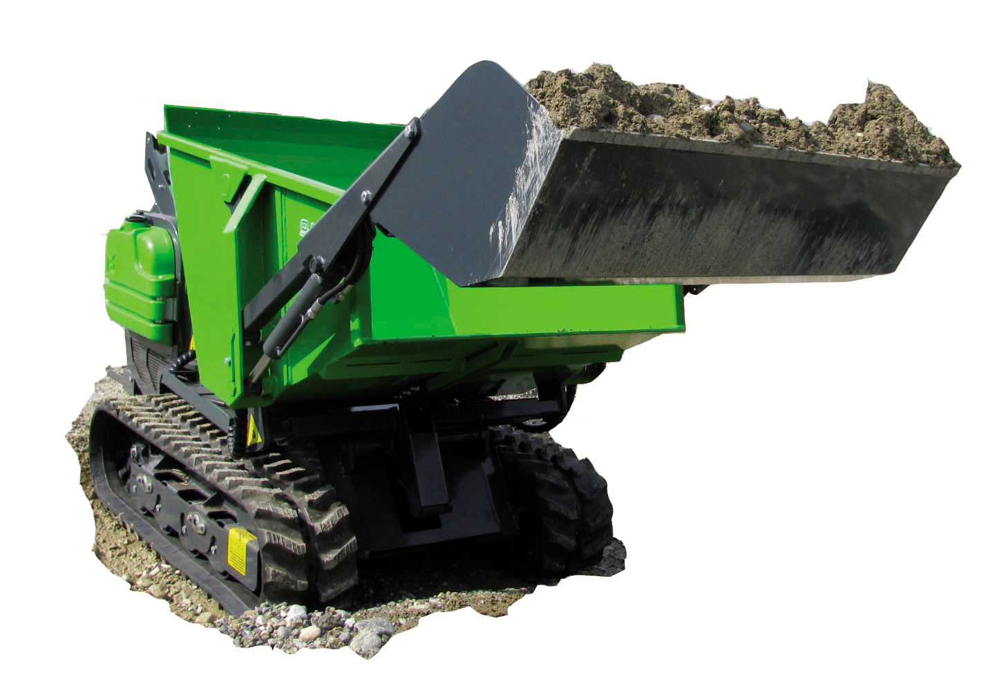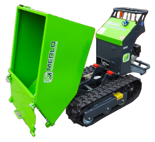 Un dumper sur chenille ultra performant , sa benne à déchargement niveau 0 à une capacité de 550 litres ( environ 800kg) .Une fois chargée elle vous permettra d’aller vider votre chargement en toute sécurité même en devers en un temps record ( vitesse maxi 5km /h ).